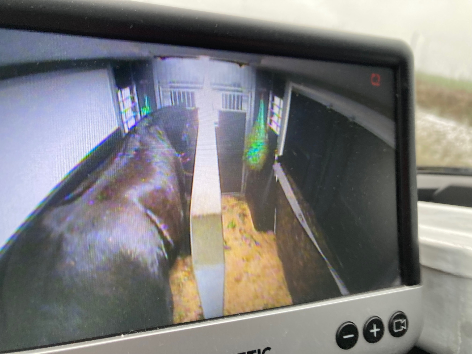Ich fahre mit Pferdetransporter und ihrem Pferd vom Stall zum Ziel.